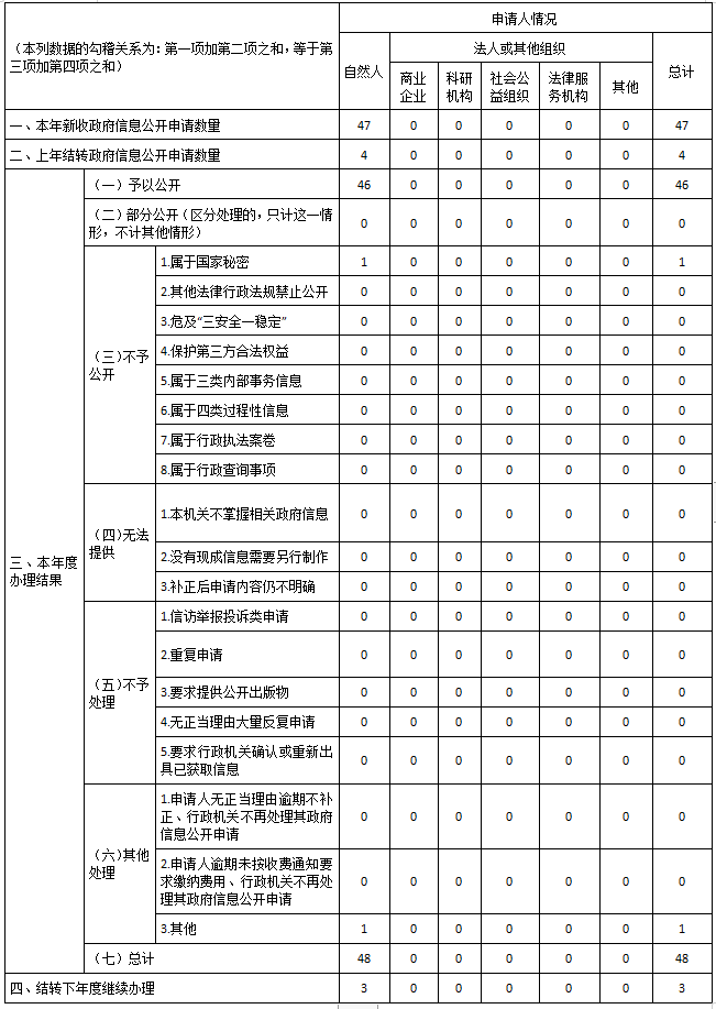 三、收到和处理政府信息公开申请情况